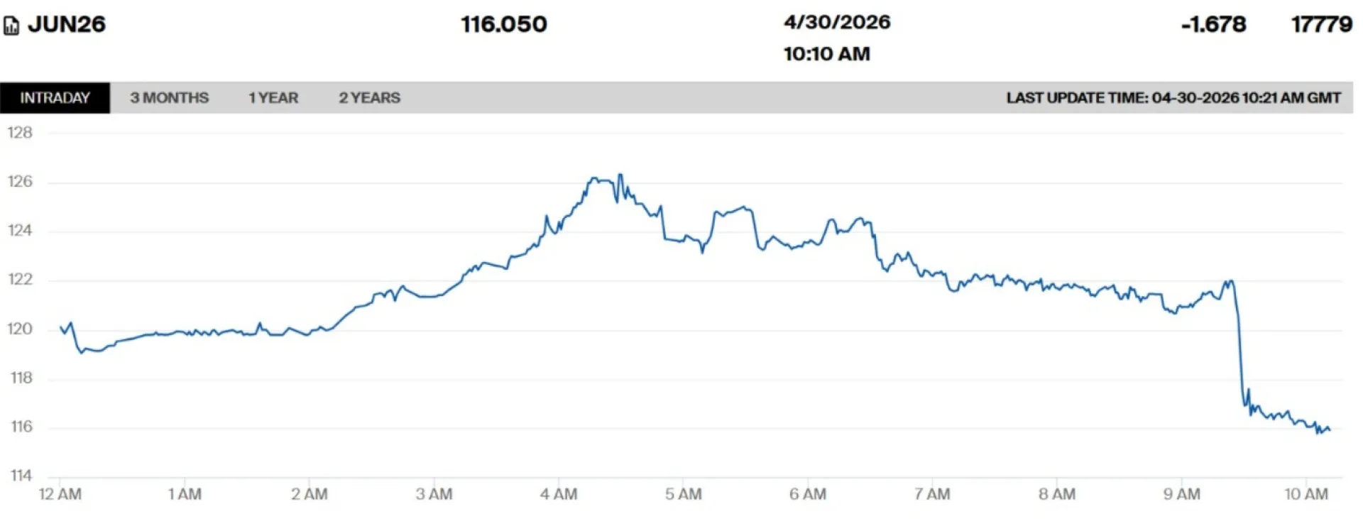 Утром 30 апреля нефть марки Brent резко подорожала, превысив 120 долларов за баррель. Это увеличение цен связано с продолжающейся блокадой Ормузского пролива и неопределенностью в переговорах между США и Иран. В отдельные моменты котировки поднимались выше 126 долларов за баррель.